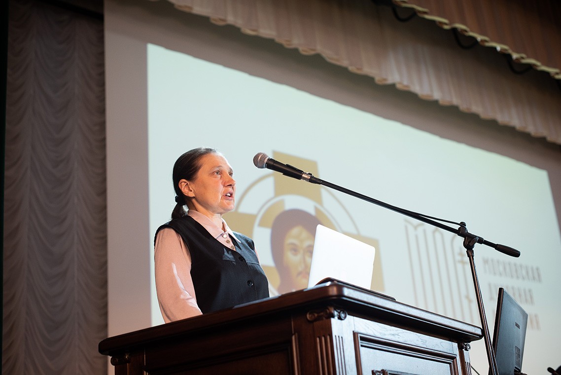 Выступление Натальи Суховой, доктора церковной истории, доктора исторических наук, профессора кафедры общей и русской церковной истории и канонического права Православного Свято-Тихоновского гуманитарного университета, было посвящено проблеме академического монашества 1890-1910-х гг., вопросам окормления «ученых монахов» старцами.