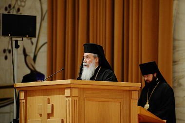 «А сейчас все мы, православные, призваны к тому, чтобы, забывая задняя, простираться вперед, к гнетущим нас проблемам, – сказал он далее. – На Православном Востоке, в том регионе, где мы живем, сегодня, как никогда ранее, распространяются принесенные с Запада материализм, механицизм, релятивизм… Это факт, что научный прогресс сделал нашу жизнь более удобной и дал нам возможность повысить ее качество. Однако, чем дальше, тем все больше начинаем мы понимать слова Христа о том, что не хлебом одним будет жив человек (Лк. 4, 4). Изгоняя Бога из жизни человека, различные социальные системы, может, и возвещают, что “в начале есть экономика“, но для Церкви “в начале“, в центре, да и в конце – человек, это уникальное творение Божие».