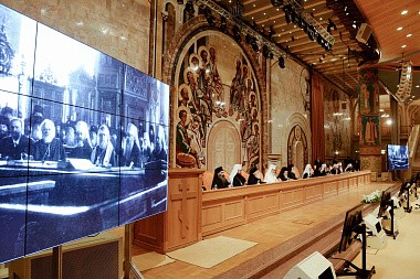 Обратившись к присутствовавшим, Святейший Патриарх Кирилл подчеркнул, что последнее заседание Архиерейского Собора Русской Православной Церкви носит торжественный характер и посвящается историческому событию – 100-летию восстановления Патриаршества в Русской Православной Церкви. «Это событие произошло, может быть, в самый трудный момент нашей национальной истории, когда случился революционный слом всей жизни, когда очень много сил, внешних и внутренних, восстало на Церковь Божию и на Церковь уже обрушились кровавые гонения, – напомнил Его Святейшество. – Первые жертвы среди священнослужителей, начало которым положила мученическая смерть протоиерея Иоанна Кочурова в Царском Селе, были совершены до избрания Святейшего Патриарха Тихона. Поэтому Святейший в полной мере сознавал, какой жребий уготован ему, когда услышал весть о избрании его на Патриарший престол. И мы знаем, что предчувствия Святейшего, к сожалению, оправдались. Все его недолгие семь лет служения на Патриаршей кафедре были годами исповедничества. Не только потому, что каждый день он рисковал жизнью, не только потому, что он лишался свободы, но потому, что он ежедневно получал свидетельства о зверствах, творимых над иерархами и клиром Русской Православной Церкви, о жертвах среди наших мирян. Он получал свидетельства о разрушении храмов и монастырей, о разрушении тысячелетней православной традиции нашего народа. Он получал известия о том, как власть, борясь с Церковью, не только наносила ей удары извне, но и пыталась изнутри разрушить единство, инспирируя церковный раскол».