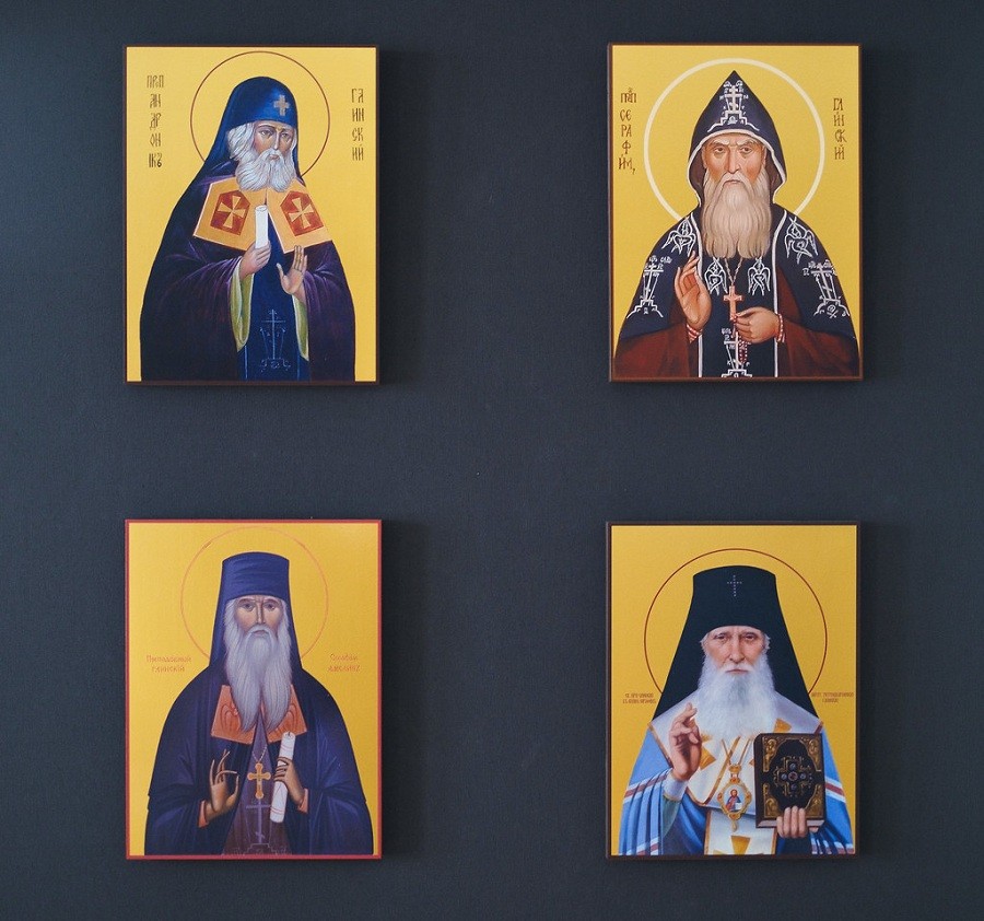В центре зала помещены иконы «Собор преподобных отцов Глинских» и «Собор преподобных отцов Глинских, в XX веке просиявших». На одной из стен – отдельные иконы каждого из четырех прославленных Глинских старцев. В витринах – фотографии старцев, книги о них, оригиналы их писем, копии из личного дела схиархимандрита Серафима (Романцова). Среди представленных писем имеются и оригиналы, которые подписывали Московские и Грузинские Патриархи, ректор Московской духовной академии протоиерей Константин Ружицкий, заведующий ЦАКом (сейчас музей Московской духовной академии) протоиерей Алексей Остапов и другие иерархи.