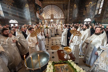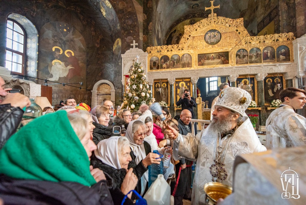 По окончании Литургии Блаженнейший митрополит Онуфрий совершил в храме чин великого освящения воды и окропил всех присутствовавших большой агиасмой под пение тропаря празднику Богоявления.