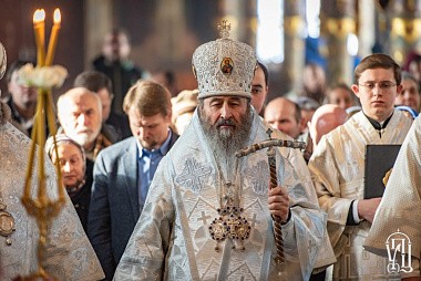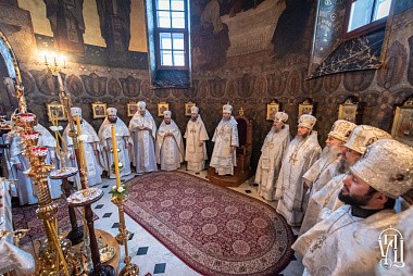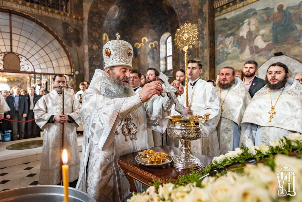 Его Блаженству сослужили наместник обители митрополит Вышгородский и Чернобыльский Павел, управляющий делами УПЦ митрополит Бориспольский и Броварской Антоний, архиепископ Бучанский Пантелеимон и духовенство обители.