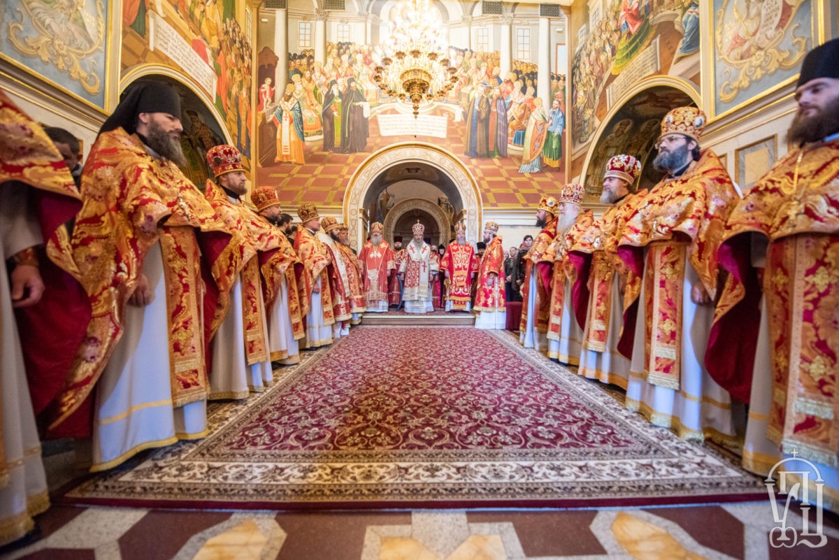 Предстоятелю Украинской Православной Церкви сослужили наместник Лавры митрополит Вышгородский и Чернобыльский Павел, архиепископ Бучанский Пантелеимон, архиепископ Васильковский Николай, епископ Барышевский Виктор, епископ Бородянский Марк, духовенство обители и гости в священном сане.