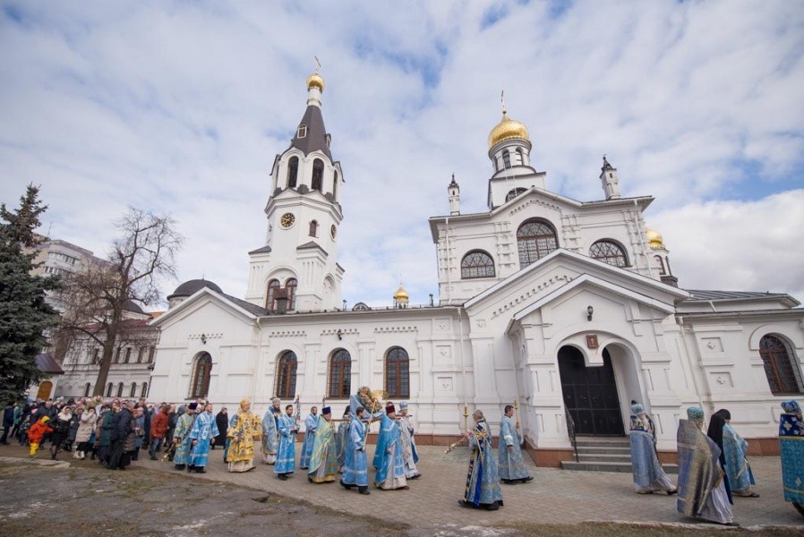 По окончании Литургии был совершен крестных ход с иконой Божией Матери «Козельщанская». Затем владыка Амвросий поздравил духовенство и прихожан с праздником и обратился к молящимся со словом назидания.