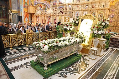 Завершились торжественные празднования крестным ходом, во время которого мощи игумена Почаевского были перенесены в Пещерный храм, где они постоянно пребывают.