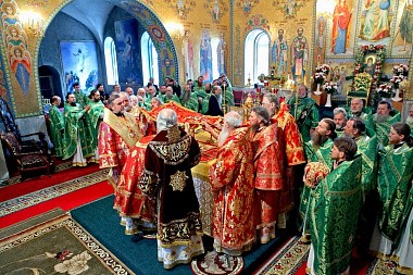 По окончании богослужения раку с мощами святого Амфилохия крестным ходом перенесли в пещерный храм – место их постоянного пребывания. Вместе с иерархами и священнослужителями святыню провожали тысячи верующих – паломников и прихожан.
