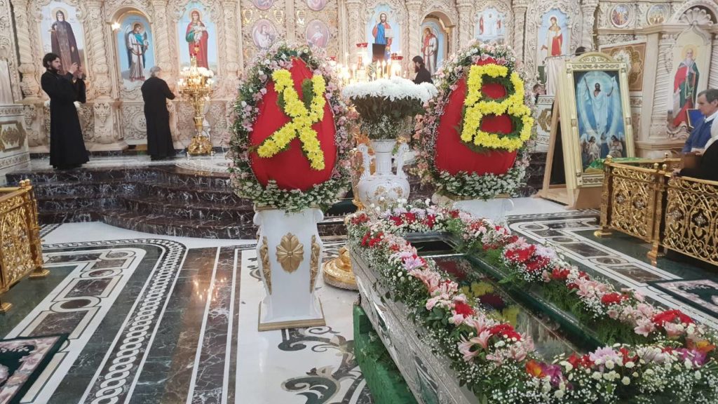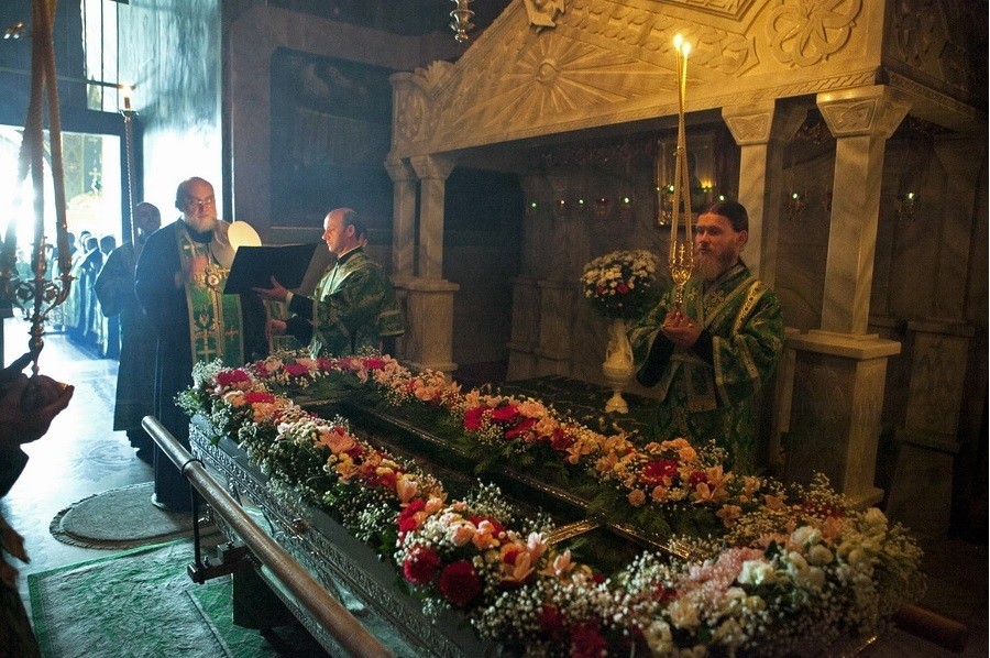 Во время утрени все желающие прикладывались к святым мощам прп. Амфилохия Почаевского, пребывавшим в центре храма.