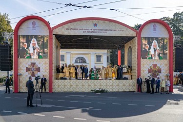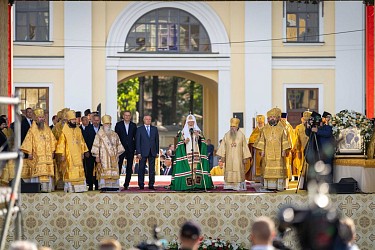 Святейший Патриарх Кирилл обратился к собравшимся на площади Александра Невского с Первосвятительским словом.