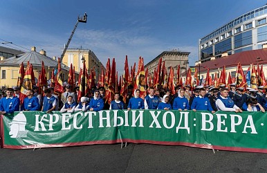 На площадь также прибыли участники общегородского праздничного крестного хода, которые проследовали по Невскому проспекту от Казанского кафедрального собора. Кроме ставшего традицией крестного хода по Невскому проспекту от Казанского собора до Александро-Невской лавры, впервые был организован крестный ход по Неве. Он прошел от крепости Орешек до Синопской набережной. Именно по воде мощи Небесного покровителя города были доставлены в Лавру три века назад. Также состоялся проезд колонны из ста мотоциклистов и группы всадников, участников конного похода «Александрова дорога», участвовавших в исторической реконструкции дружины князя Александра Невского.