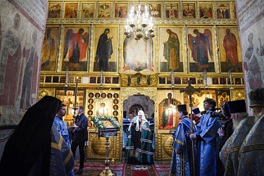 7 апреля 2024 года, в неделю 3-ю Великого поста, Крестопоклонную, праздник Благовещения Пресвятой Богородицы, день преставления святителя Тихона, Патриарха Московского и всея России (1925), Святейший Патриарх Московский и всея Руси Кирилл совершил Божественную литургию святителя Василия Великого в Благовещенском соборе Московского Кремля.