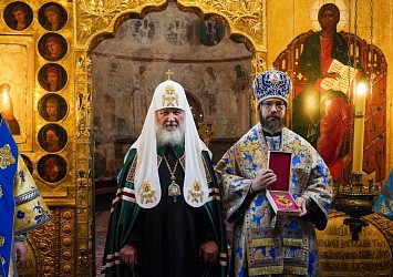 На сугубой ектении были вознесены молитвенные прошения о Святейшем Патриархе Кирилле: