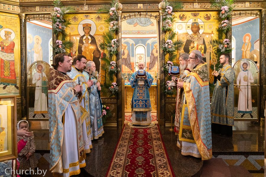 Его Высокопреосвященству сослужили: епископ Несвижский Авксентий, викарий Патриаршего экзарха всея Беларуси; настоятель прихода храма иконы Божией Матери «Державная», духовник Елисаветинского монастыря протоиерей Андрей Лемешонок; благочинный 6-го Минского городского церковного округа, настоятель прихода храма святителя Николая Чудотворца в микрорайоне Сокол города Минска протоиерей Сергий Комлик; председатель Наградной комиссии Белорусской Православной Церкви Дионисий Ковалёв, клирики обители.