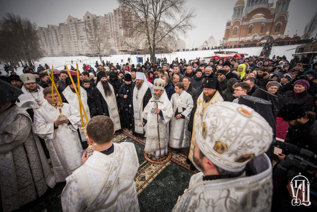 В завершение Предстоятель Украинской Православной Церкви поздравил всех с праздником и пожелал, чтобы «благодать, которую Господь принес нам на землю, которую Он подарил нам, сходя в воды реки Иордан, всегда была с нами, покрывала нас на всех путях нашей земной жизни, укрепляла нас в нашем земном крестоношении, помогала нам достичь вышнего Иерусалима – Царства Небесного».