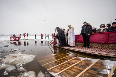 В этот же день Блаженнейший митрополит Киевский и всея Украины Онуфрий освятил воды Днепра вблизи Покровского собора в Оболонском районе Киева.
