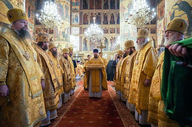 На сугубой ектении были вознесены особые прошения о ныне тезоименитом Президенте России Владимире Владимировиче Путине.