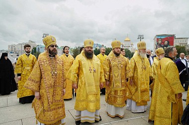 Из кафедрального соборного Храма Христа Спасителя в Успенский собор был принесен ковчег с частицей мощей равноапостольного великого князя Владимира.