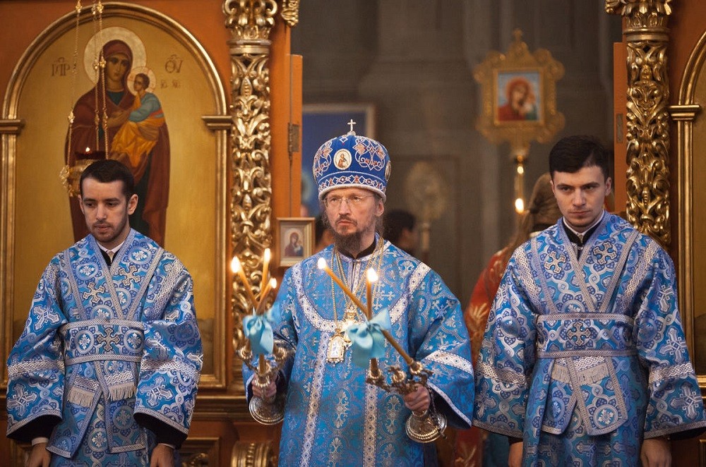 По окончании богослужения было совершено славление Пресвятой Богородице, после чего владыка экзарх поздравил духовенство и мирян с праздником и обратился ко всем со словом проповеди. Митрополит Вениамин поздравил причастников с принятием Тела и Крови Христовых и преподал всем архипастырское благословение.