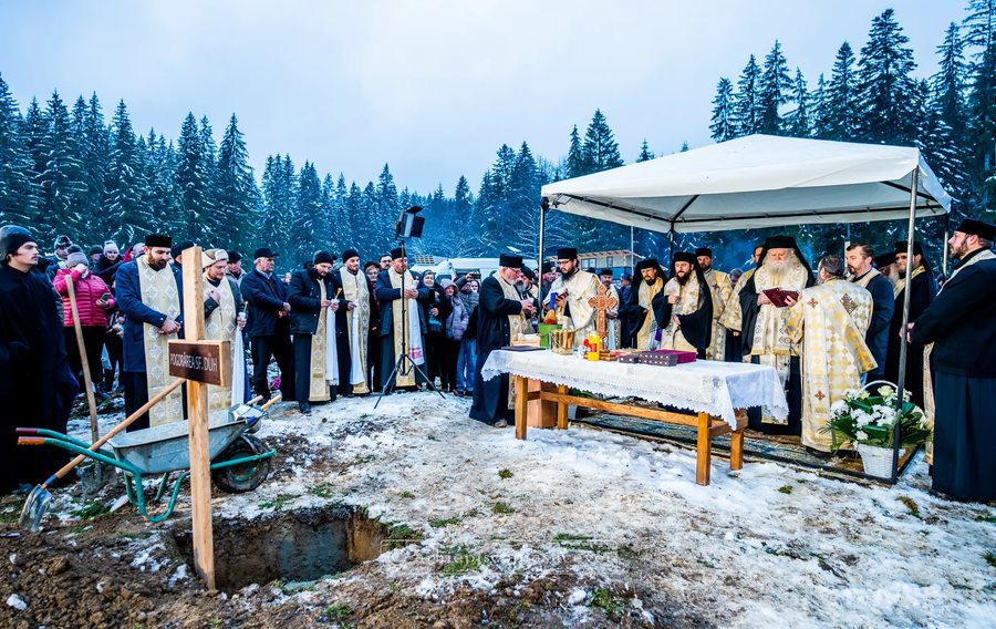 Чин освящения закладного камня совершил в воскресенье архиепископ Сучавский и Рэдэуцкий Калиник в сослужении иерархов Румынской Церкви. На литургию посреди леса у подножия Карпатских гор собралось множество верующих, сообщает basilica.ro.