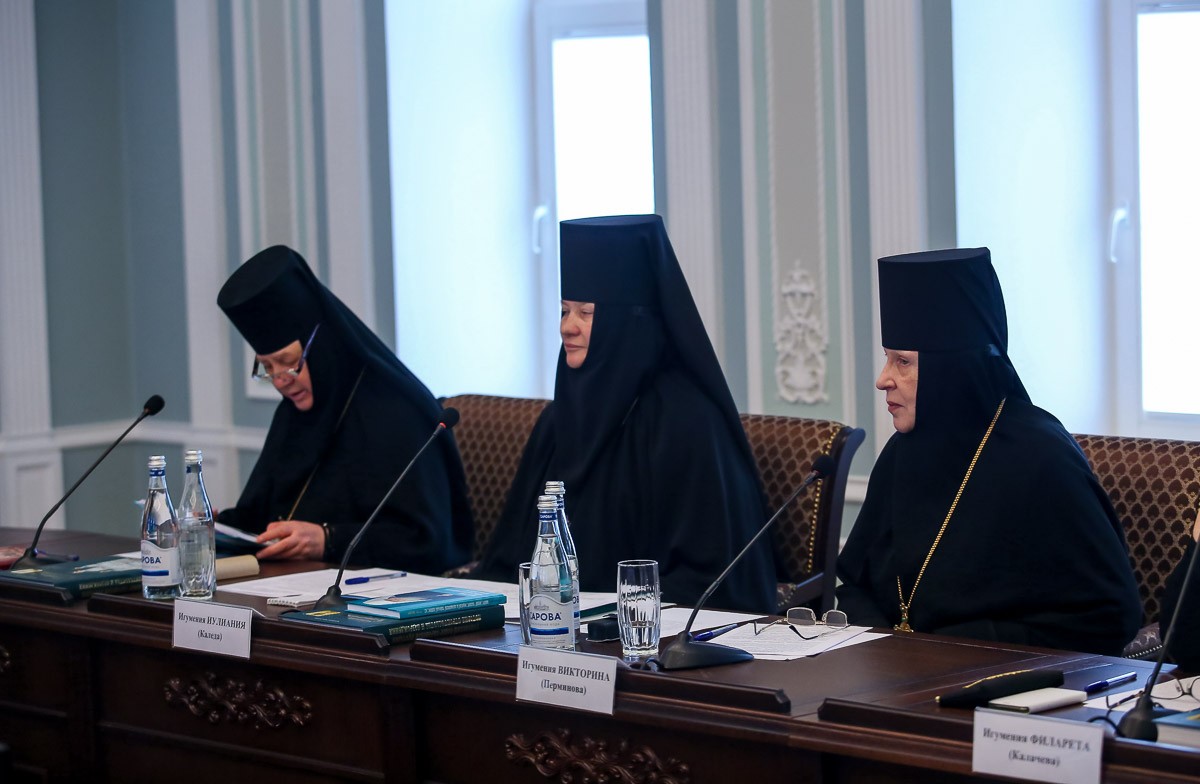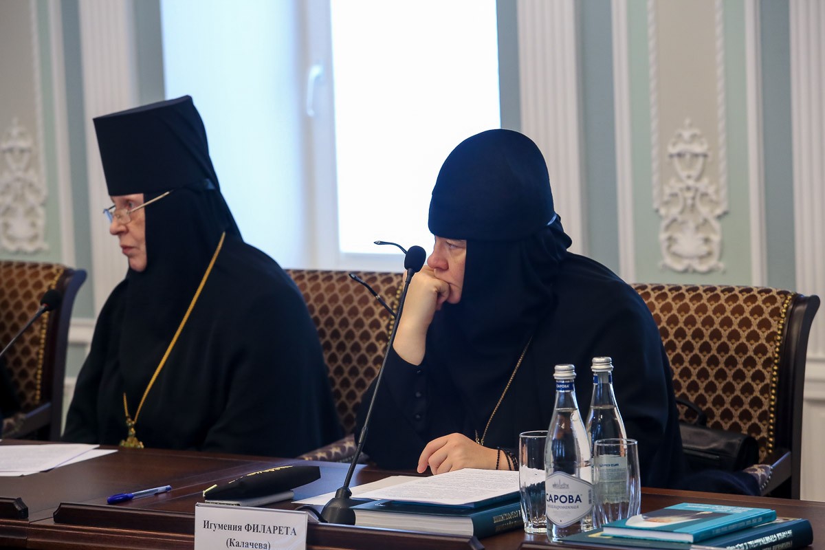 Заместитель председателя Синодального отдела по монастырям и монашеству, настоятельница Зачатьевского ставропигиального женского монастыря Москвы игумения Иулиания (Каледа) сообщила о том, как идет работа над документом «Келейное правило монашествующего», и о промежуточных итогах обсуждения документа «Священнослужение монахов на приходах», которое проходило в рамках мероприятий Синодального отдела по монастырям и монашеству.