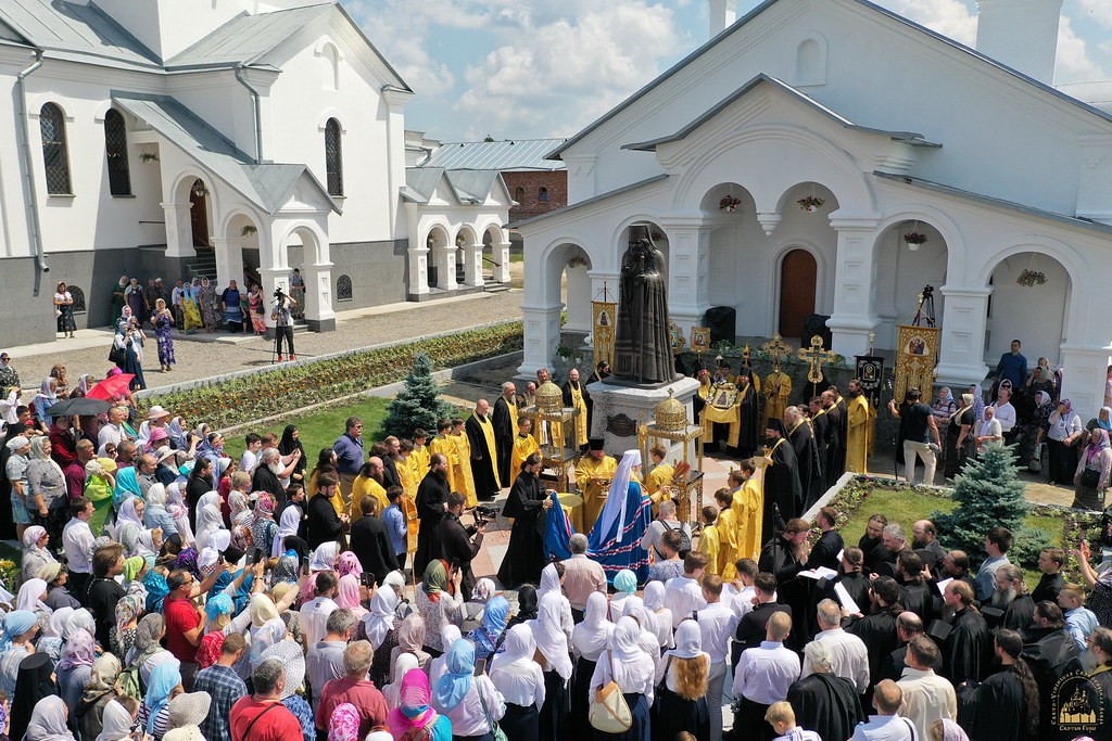 Чин освящения монумента святому совершил митрополит Святогорский Арсений совместно с прибывшими из США представителями духовенства РПЦЗ и братией Святогорской обители. Вместе с многочисленными паломниками из разных уголков Украины в молитвенном чествовании архиепископа Иоанна приняли участие гости из США, представители американских и украинских благотворительных фондов, учрежденных в память святителя. Среди присутствующих находились также автор проекта памятника, скульптор Александр Моргацкий и координатор проекта, член Международной организации искусствоведов (АICA) Елена Зубкова.
