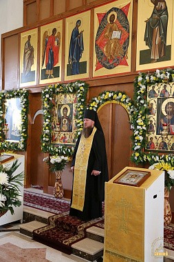 По запричастном стихе проповедь произнес архимандрит Исихий (Клыпа). Говорилось о том, что святитель Иоанн, родившийся в этом крае и особо ходатайствовавший о его жителях и обо всех православных христианах, живущих в этой стране, стяжал великое дерзновение перед Богом. Этот угодник Божий в своей жизни явился настоящим подражателем тех святых, о подвигах которых мы столько читаем в их житиях. Отмечалось, что в наше время, когда наблюдается умножение слов и при этом фактическое их обесценивание, очень трудно достучаться до человеческого сердца какими-либо обычными словами. И святитель Иоанн (Максимович) своей жизнью, своими подвигами, своим молитвенным настроением и постоянным самопожертвованием явил нам, как на самом деле должен действовать пастырь Христов.