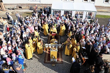 После крестного хода к присутствующим с пастырским словом обратился архимандрит Серафим (Лаврик):