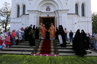 5 июня 2016 года, в Неделю 6-ю по Пасхе, о слепом, день памяти преподобной Евфросинии, игумении Полоцкой, в Крестовоздвиженском соборе Спасо-Евфросиниевского женского монастыря г. Полоцка состоялась Божественная литургия.
