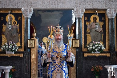 Его Блаженству сослужили наместник Лавры митрополит Вышгородский и Чернобыльский Павел, управляющий делами Украинской Православной Церкви митрополит Бориспольский и Броварской Антоний, митрополит Тульчинский и Брацлавский Ионафан, митрополит Могилев-Подольский и Шаргородский Агапит, архиепископы Бучанский Пантелеимон, Уманский и Звенигородский Пантелеимон, Роменский и Бурынский Иосиф, Северодонецкий и Старобельский Никодим, епископы Бородянский Варсонофий, Фастовский Дамиан, Александрийский и Светловодский Боголеп, Гостомельский Тихон, Барышевский Виктор, Белогородский Сильвестр и духовенство Киево-Печерской обители.