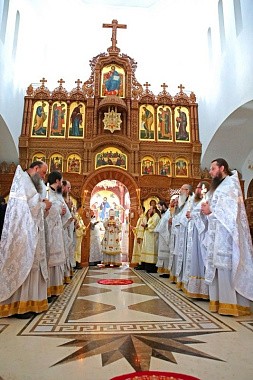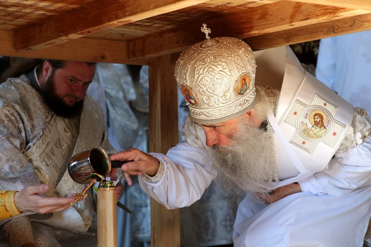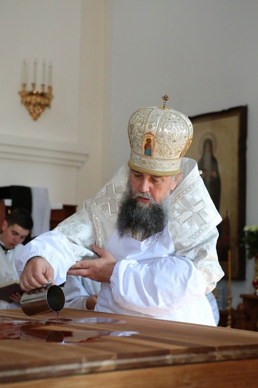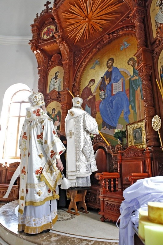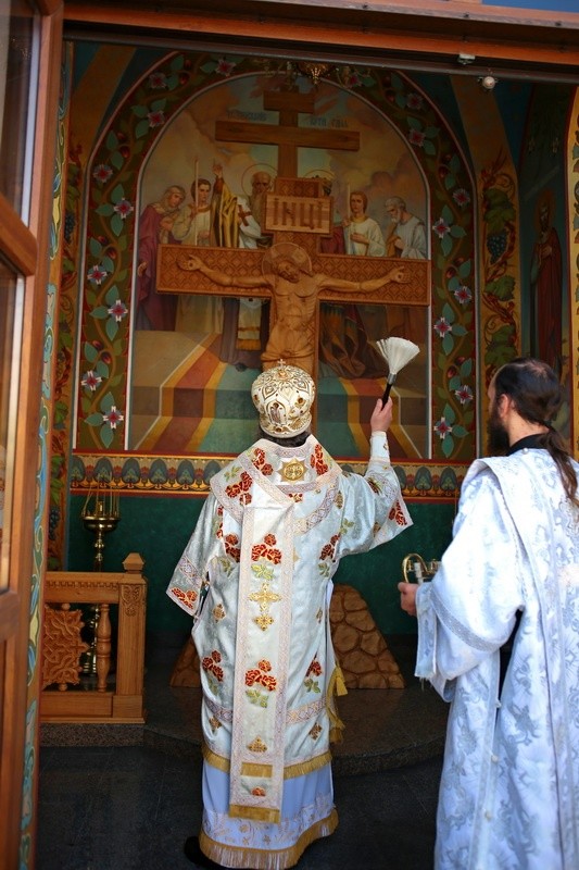 Большой чин освящения храма и праздничную Божественную литургию возглавил митрополит Тернопольский и Кременецкий Сергий в сослужении наместника Свято-Успенской Почаевской лавры митрополита Почаевского Владимира, ректора Почаевской духовной семинарии епископа Шумского Иова, скитоначальника Свято-Духовского скита архимандрита Пафнутия (Целика), братии и гостей обители в священном сане.
