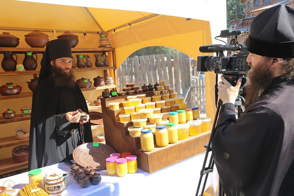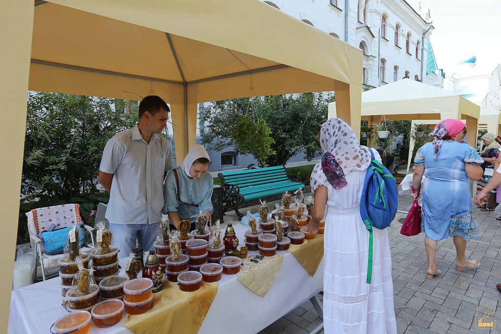 На ярмарке представлена продукция монастырской пасеки Свято-Успенской Святогорской Лавры: множество сортов меда, среди которых большой популярностью пользуется крем-мед (он не содержит в себе крупных кристаллов, но в то же время сохраняет свои вкусовые и лечебные качества).