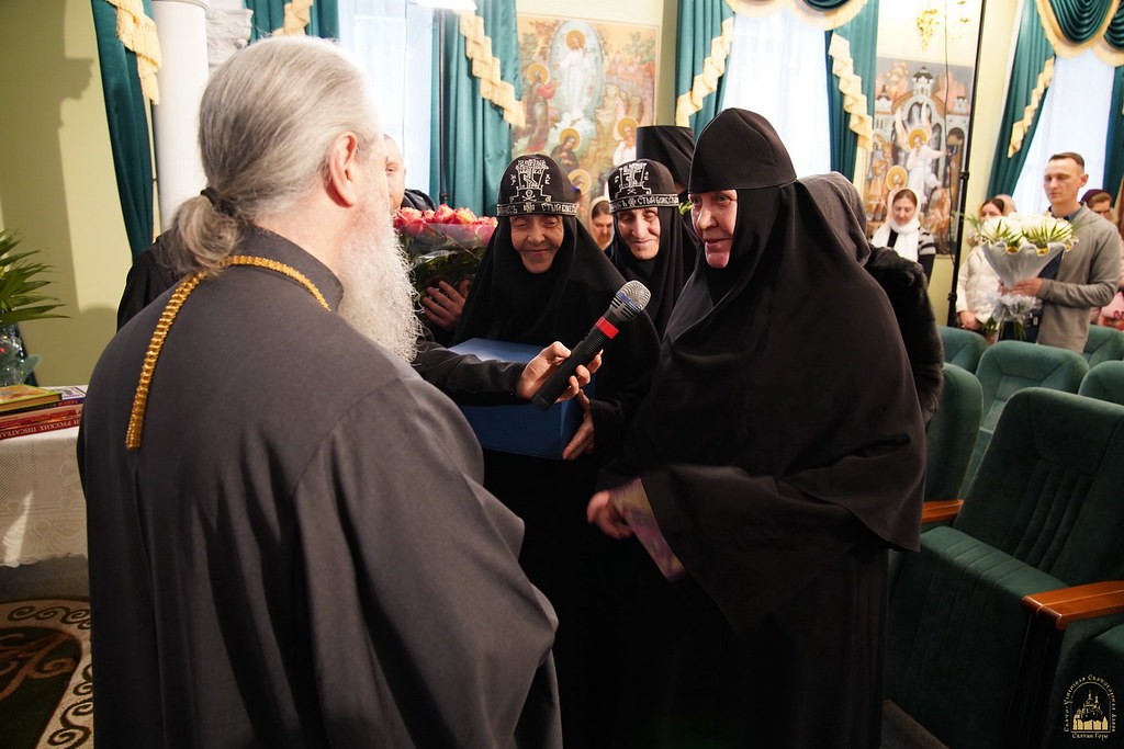 Далее произнесли слова благодарности и по случаю четвертьвекового наместнического служения владыку Арсения поздравили: скитоначальник скита в честь святителя Иоанна Шанхайского и Сан-Францисского в с. Адамовке архимандрит Всеволод (Георгица) и старшая сестра этого же скита монахиня Евдокия (Радул) с сестрами; монахиня Амвросия (Коваль), старшая сестра Богородичанского скита в честь иконы Божией Матери «Всех скорбящих Радость», с сестрами обители; архимандрит Феофан (Люкшин), скитоначальник Свято-Георгиевского скита в с. Долина, со своими прихожанами.