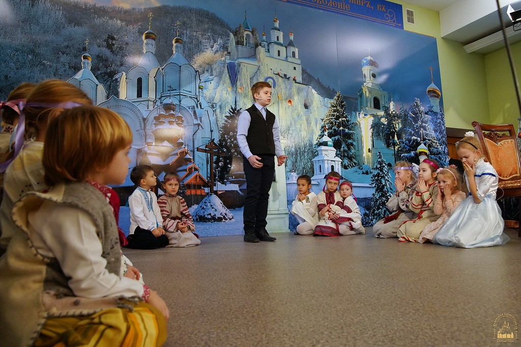 Мероприятие началось общей молитвой, после чего на сцену вышли учащиеся воскресных школ при лаврских скитах в селах Богородичное и Долина. Руководитель воскресной школы монахиня Агния (Кучеренко) перед началом выступления обратилась с благодарственным словом к владыке Арсению и поздравила с 25-летием наместничества.