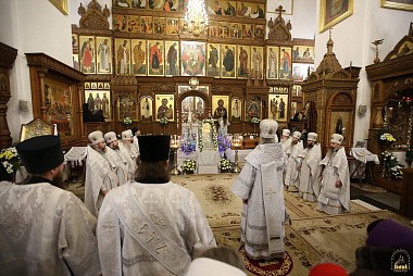 В этот день Его Высокопреосвященство совершил Божественную литургию в Успенском соборе обители в сослужении сонма лаврского духовенства.