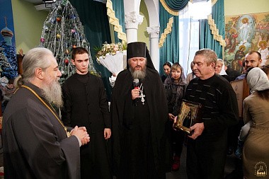 После просмотра владыка Арсений поблагодарил ребят за исполненные глубокого смысла сценки, отметил способности молодых артистов и ту искренность, с которой дети исполняли свои роли, поздравил с рождественскими праздниками и вручил подарки.