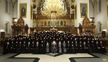 В завершение поздравлений в Успенском соборе Святогорской лавры было сделано общее памятное фото наместника митрополита Арсения со всей лаврской братией.