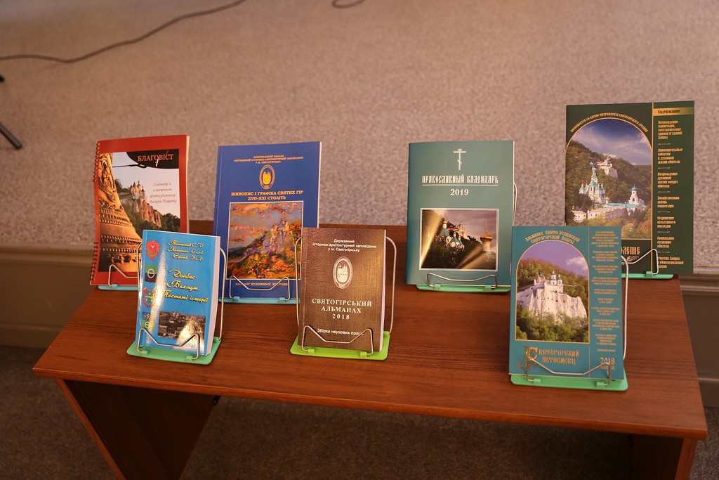 Перед началом совместного заседания секций Владимир Дедов презентовал новые издания Святогорского заповедника. Издания Святогорской лавры представил заведующий музеем и архивом монастыря архимандрит Лазарь (Терещенко).