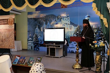 Доклад заведующего музеем и архивом Свято-Успенской Святогорской лавры архимандрита Лазаря (Терещенко) «Опыт работы информационно-просветительского отдела Свято-Успенской Святогорской лавры в 2018 году» был посвящен результатам архивной, исследовательской и издательской деятельности Святогорской обители за текущий год.