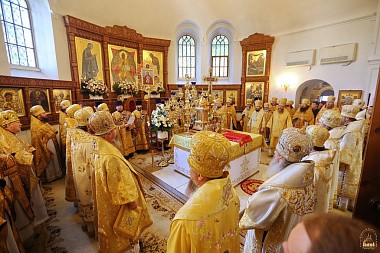 Его Высокопреосвященству сослужили наместник Успенской Киево-Печерской лавры митрополит Вышгородский и Чернобыльский Павел, митрополит Луганский и Алчевский Митрофан, управляющий делами Украинской Православной Церкви митрополит Бориспольский и Броварской Антоний, митрополит Святогорский Арсений, митрополит Горловский и Славянский Митрофан, митрополит Изюмский и Купянский Елисей, архиепископ Краснолиманский Алипий, архиепископ Макеевский Варнава, архиепископ Ровеньковский и Свердловский Пантелеимон, архиепископ Северодонецкий и Старобельский Никодим, архиепископ Львовский и Галицкий Филарет, епископ Добропольский Спиридон, святогорское духовенство и гости обители в священном сане.