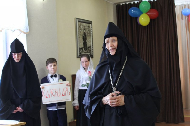 По традиции ребята поздравили Матушку со Светлым Христовым Воскресением и преподнесли сестрам обители сладкие подарки, сделанные своими руками.