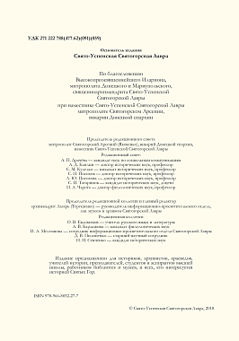 Новый альманах выпущен по благословению митрополита Донецкого и Мариупольского Илариоиа, священноархимандрита Свяго-Успенской Святогорской лавры, при наместнике Свято-Успенской Святогорской лавры митрополите Святогорском Арсении, викарии Донецкой епархии.