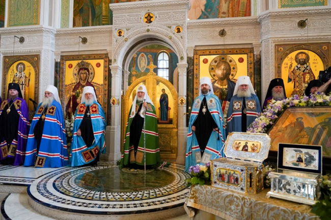 Перед богослужением состоялась торжественная встреча двух ковчегов с честными мощами великих русских святых — преподобной Евфросинии Полоцкой и преподобной Евфросинии Московской. Мощи преподобной Евфросинии Полоцкой были принесены из Спасо-Евфросиниевского монастыря г. Полоцка (Белоруссия), мощи преподобной Евфросинии Московской — из кафедрального соборного Храма Христа Спасителя г. Москвы.