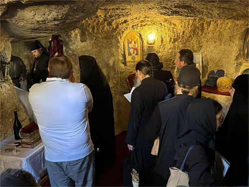 Члены делегации Русской Православной Церкви поднялись на гору и посетили пещеру преподобного Антония, где совершили акафист преподобному. У подножия горы гости осмотрели новый храм Креста Господня и Воскресения Христова. Затем для делегации была проведена экскурсия по обители; гости посетили ее древние храмы, поклонившись находящимся в них святыням, и побывали на монастырском источнике, некогда явленном по молитвам преподобного.