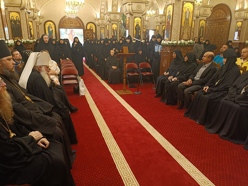 Митрополит Викентий и члены делегации поклонились гробнице с мощами святых мучениц и пропели им величание. Гости также познакомились также с монастырским подсобным хозяйством и мастерскими. Состоялось общение с сестрами монастыря и правящим архиерем епархии, в котором он находится, епископом Дамиеттским Марком. Двое из сестер – Иулитта Фуад и Феопистия Сайед – в сентябре этого года посетили Россию в составе коптской монашеской делегации.
