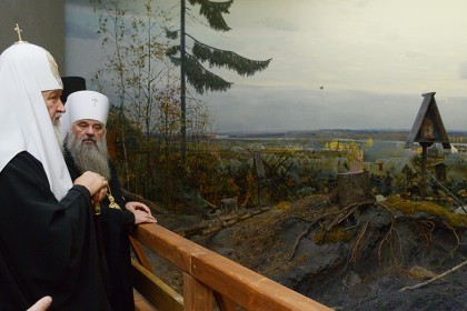 Первосвятитель сердечно поблагодарил митрополита Климента, губернатора Калужской области А.Д. Артамонова, наместника Тихоновой пустыни архимандрита Тихона и всех, кто трудился при создании Владимирского скита и диорамы, посвященной одному из важнейших событий отечественной истории. Святейший Патриарх почтил память мастера исторической картины Павла Рыженко. Двадцатидвухметровая диорама была создана незадолго до его кончины в июле 2014 года и стала последним произведением художника.