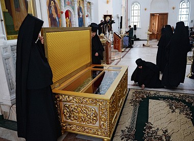 За богослужением молились: Председатель Синодального отдела по монастырям и монашеству, наместник Троице-Сергиевой лавры архиепископ Сергиево-Посадский Феогност; Заместитель Председателя Синодального отдела по монастырям и монашеству, настоятельница Зачатьевского ставропигиального женского монастыря Москвы игумения Иулиания (Каледа); настоятельница Покровского Хотькова ставропигиального женского монастыря игумения Олимпиада (Баранова); насельницы обители и воспитанницы монастырского приюта; глава городского поселения Хотьково Р.Г. Тихомирова; Председатель Совета депутатов Сергиево-Посадского района В.Н. Коротков и многочисленные гости обители.
