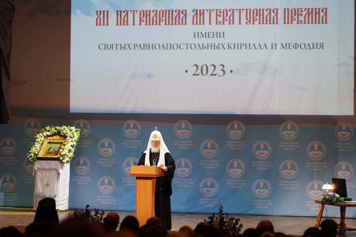 31 мая 2023 года в Зале церковных соборов кафедрального соборного Храма Христа Спасителя в Москве Святейший Патриарх Московский и всея Руси Кирилл возглавил двенадцатую церемонию избрания и награждения лауреатов Патриаршей литературной премии имени святых равноапостольных Кирилла и Мефодия. Перед началом церемонии Предстоятель Русской Православной Церкви обратился к собравшимся со словом.