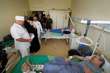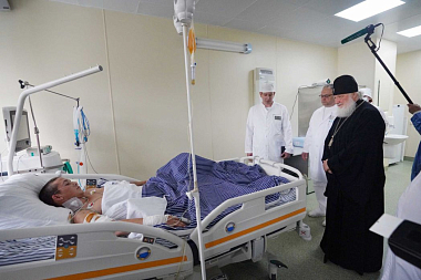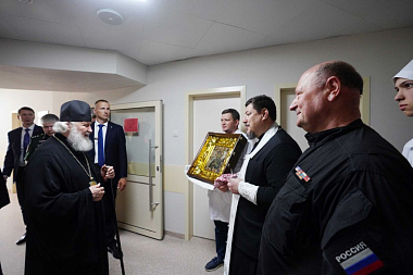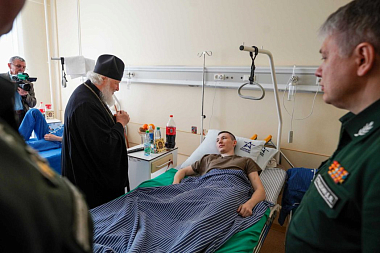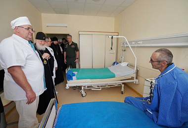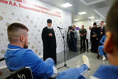 «С особым чувством я посещаю сегодня это медицинское учреждение, которое известно не только по всей России, но, наверное, и во многих других странах мира. Здесь оказывается помощь защитникам Отечества, и значение этого госпиталя особенно возрастает, когда защитники Отечества, осуществляя свой долг, следуя присяге, подвергаются рискам потерять здоровье, получить травмы, которые будут сопровождать их всю жизнь. Поэтому лечение, которое проходят здесь наши военнослужащие, — это не просто лечение физическое. Проникаясь пониманием того, что означает для военнослужащего его служба, исполнение присяги, осознаешь, насколько важно духовное воздействие на человека, находящегося в этих стенах. Очень надеюсь, что наше духовенство достойно осуществляет пастырское попечение и о сотрудниках, и о пациентах — о всех тех, кто нуждается в духовной поддержке.