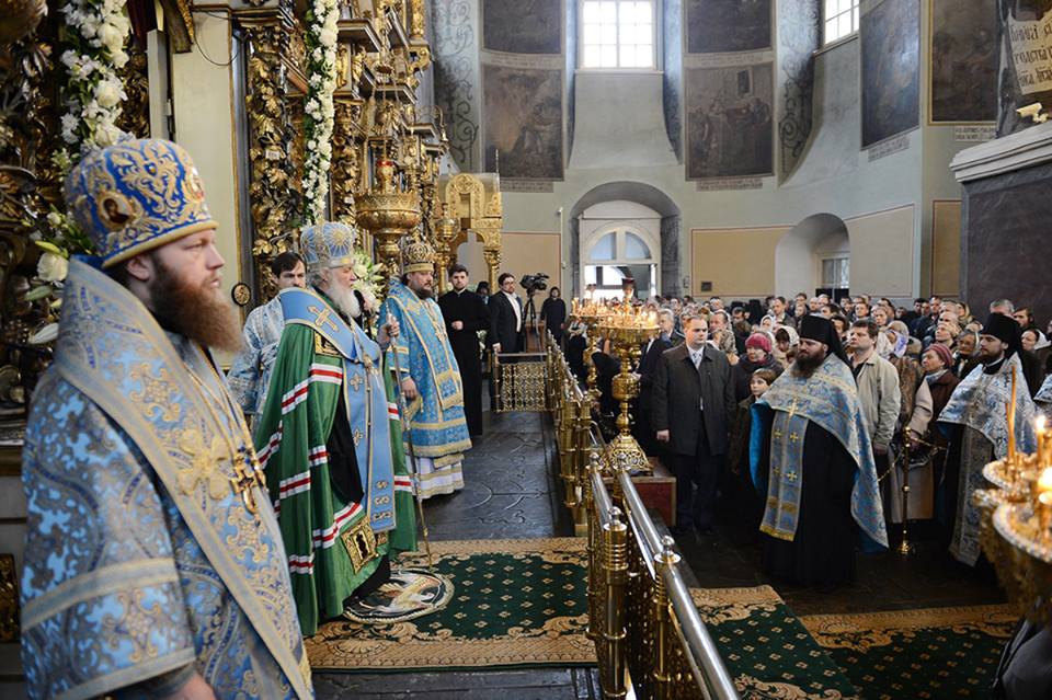 Видимо, неслучайно совершителя миссии спасения Господь в день начала спасения, явленного Им роду человеческому, призвал в Свои небесные обители. И потому по сложившейся традиции каждый год в день Благовещения Пресвятой Богородицы Патриарх, отслужив Божественную литургию в Благовещенском соборе Московского кремля, устремляется сюда, к этой святыне, чтобы с монашествующими, с братией и со всеми вами, мои дорогие, совершить молебное поклонение Тихону, святителю всея Руси. Его молитвами да сохранит Господь державу Российскую, всю историческую Русь, в Православии, в единомыслии, и да поможет нам преодолеть всякого рода нестроения, в том числе и риски братоубийственных конфликтов и междоусобных браней, чтобы под Покровом Пресвятой Богородицы, в мире, благочестии и чистоте протекала жизнь нашего народа. Аминь.