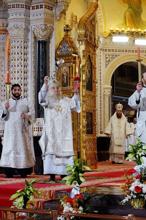 В сей нареченный и святый день, когда мир, видимый же весь и невидимый (см. канон Св. Пасхи), прославляет Начальника жизни и смерти Победителя, сердечно приветствую всех вас пасхальным восклицанием: