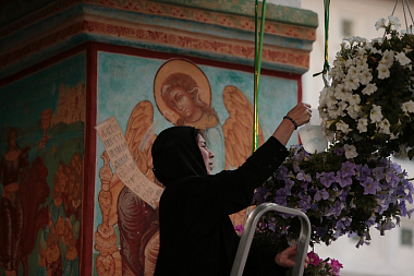 «Молитва есть мать и глава всех добродетелей», – так говорил преподобный Макарий Великий, Египетский, совершавший подвиг молитвы и покаяния в далеком IV веке. И без глубокого понимания этих слов жизнь в современной монашеской семье неполноценна. С каким бы рвением сестры не выполняли то или иное послушание, как бы они не старались сделать все хорошо ради процветания монастыря, но если нет молитвенного настроя и постоянного призывания имени Божия, – значит, их души ни на шаг не приблизились к спасению. Только молитва способна стать сильным оружием в деле спасения молящегося, облагораживая при этом любой труд – убираешь ли ты навоз в коровнике или водишь экскурсию по ухоженным дорожкам родной обители. Эта тема стала одной из основных в беседе с игуменией Варварой (Третьяк) – настоятельницей Свято-Введенского Толгского женского монастыря. Первого женского монастыря, открытого на территории России после многих десятилетий разорения святынь. 21 августа 2014-го у древней Толги юбилей – 700-летие основания. Разговор с матушкой Варварой мы начали с того, с чего началась ее жизнь здесь – со второго рождения обители в 1987 году.